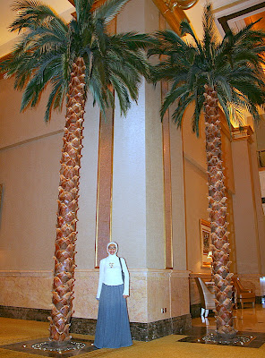 kalau dilihat dari mesjid sebrang Lulu, ya ini dia...lihat gundukan tinggi itu ? ya itu buat seluncur pasir...Foto ini dibuat waktu bawa Elika, teman dari NYC yang kunjung ke UAE.